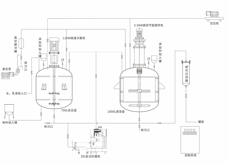 2 | 調漆釜 | 不銹鋼 | 1 | 臺 | 1000L、抽真空 |